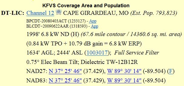 KFVS is not listed on the TVFool report because of a defective database, but it shows up on the RabbitEars.info report, and is very weak as ADTech says.