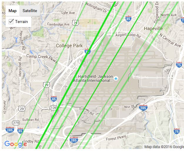 Enclosed, please find my Signal chart and a map of the ATL airport with my path's represented from Antenna.org. You can see that my paths go DIRECTLY above the airport.