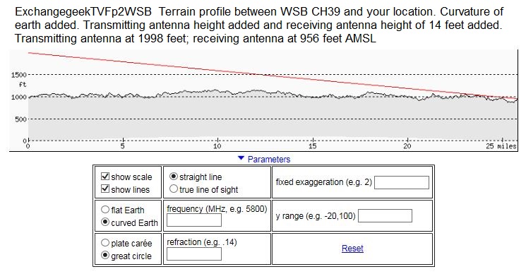 I did a terrain profile that shows the WSB signal grazing a few peaks on its way to your antenna, so I think the 2Edge designation is justified, especially since the computer simulation doesn't include ground clutter