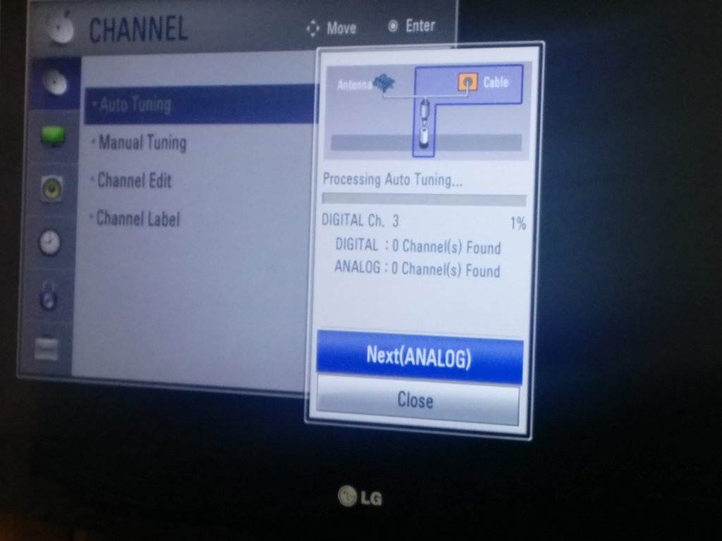 im talking to lg customer service now and they seem to have no idea what im talking about. im getting the same advice regarding changing from cable to antenna in the tuning settings, but no one seems to know how i can do that