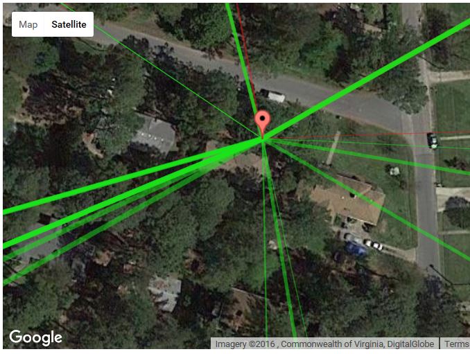 If you are willing to give me your address in a Private Message, I can see what the trees look like in an aerial view and add the green signal lines. It would look something like this: