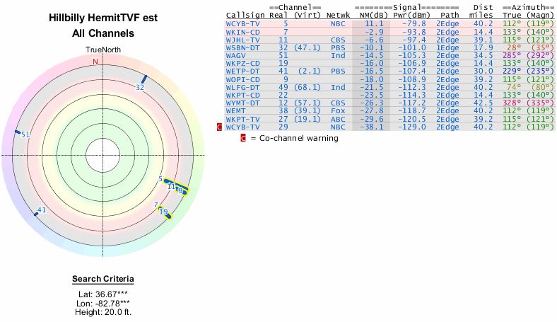 WCYB also has a transmitter on channel 29, but it is too weak for you even with your antenna at 50 feet.