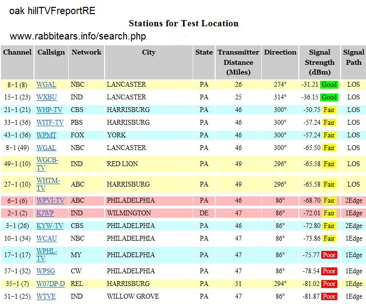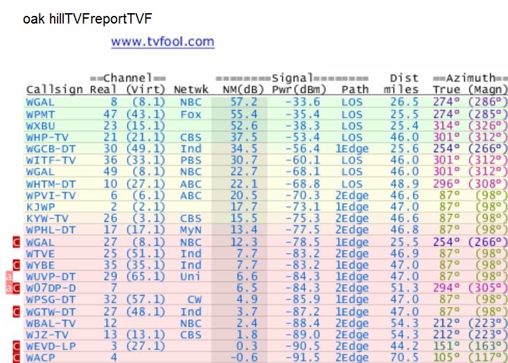 An added problem is that TVFool is using a defective database, so the reports often have errors, but we can make comparisons with reports from other sites.