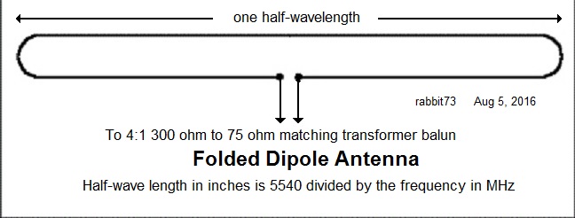 If you can't find 300 ohm twin lead, you can use some 14 gauge solid copper electrical wire for a folded dipole: