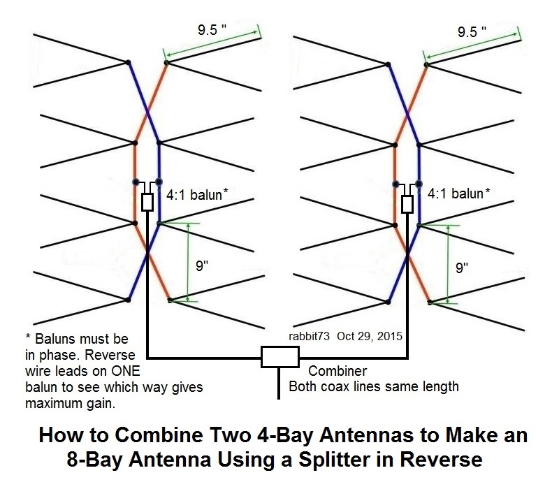 When you combine two antennas that have wire baluns, the is a 50% percent chance of getting it right, because the two antennas must be connected in phase to have any gain over just one.
