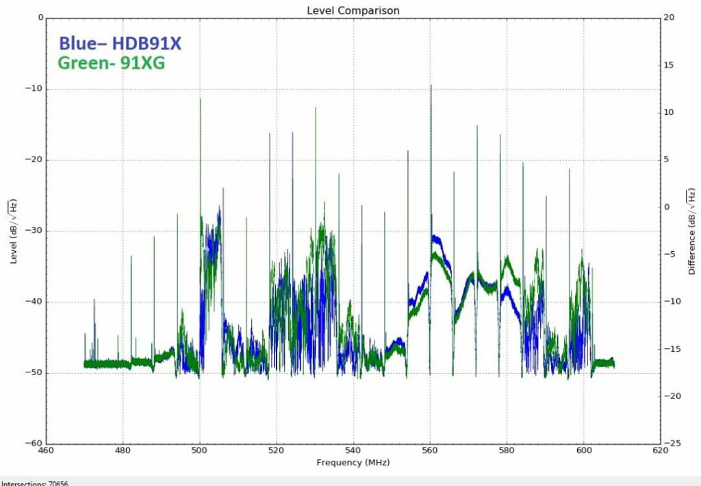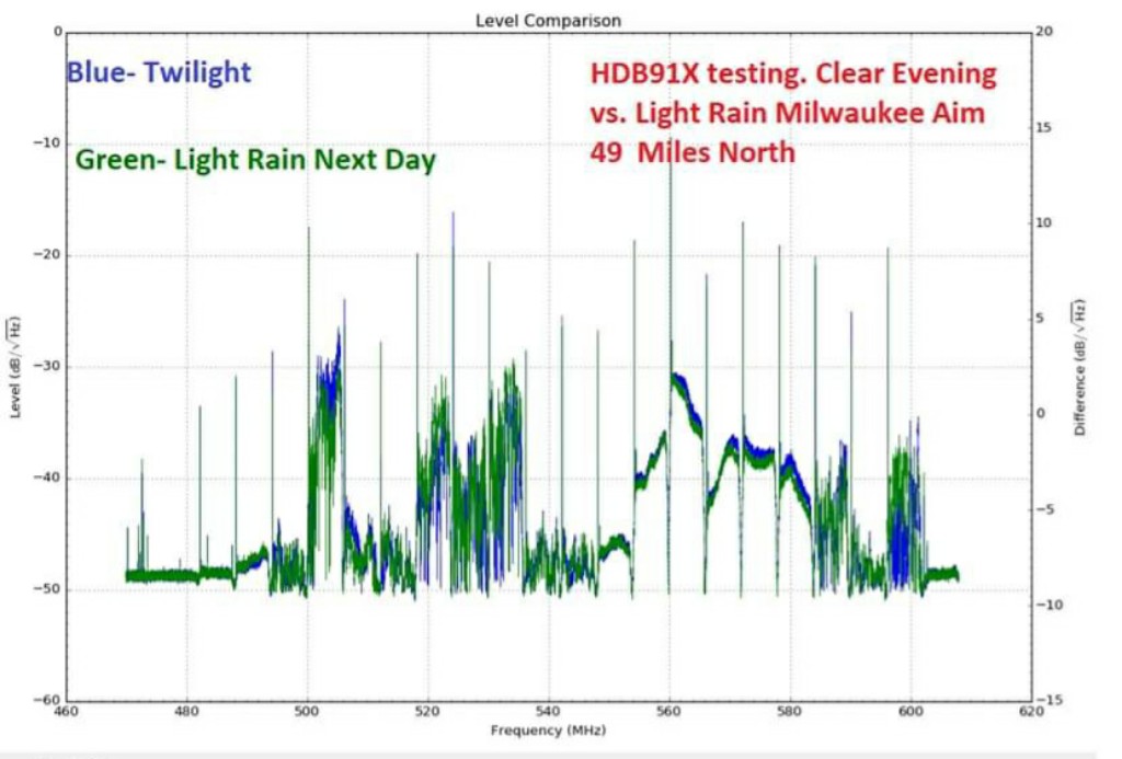 Just before sunset, I scanned the UHF spectrum and then a few hours later I scanned again: