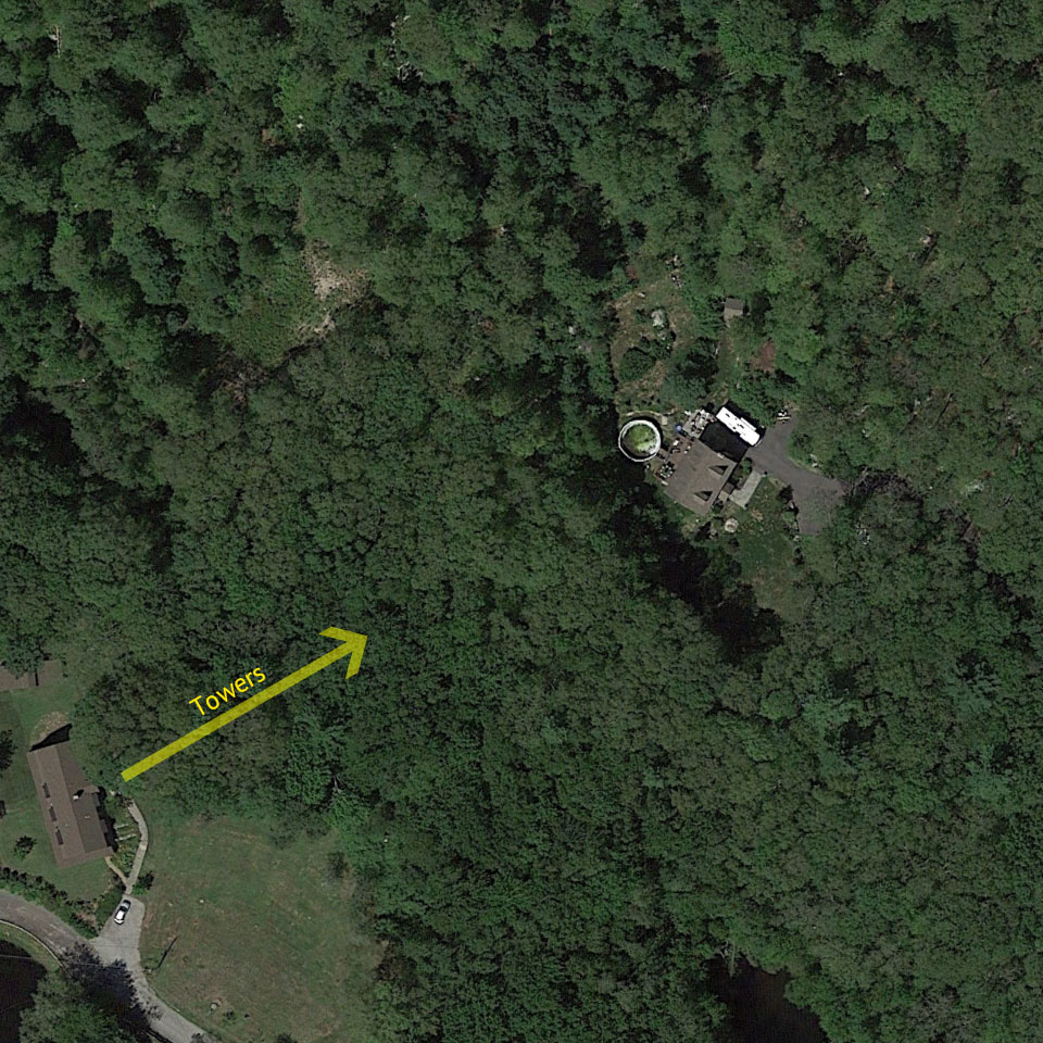 Here's a photo pointing roughly in the direction of the transmission towers. As you can see, it is almost impossible to get above the tree line. Let me know if that changes your recommendation.