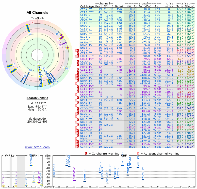 The tvfool radar plot report shows that the Digital Tv stations groups are to the south south east.