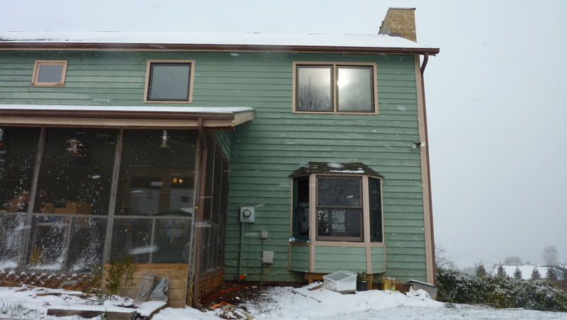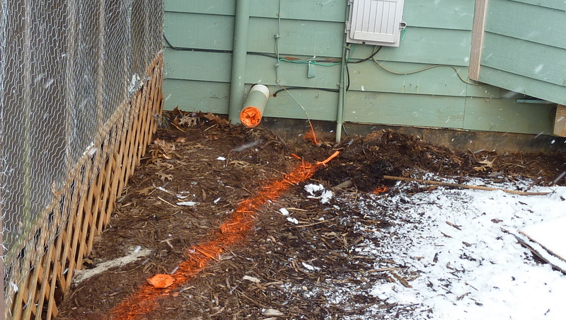 These pictures show where I want to ground and enter my house. I have underground power. The closest photo shows orange where the power company said my line comes in and you can see my meter. The orange paint line ends at my house ground rod. The second photo shows orange flagging where I'd hoped to add a second ground rod, connected to the first, where the soil stays more moist (note it's right beneath a gutter). In both photos, you can see a pvc pipe end with orange in it - that's from a propane furnace no longer in use, so that's where I would enter the basement with coax, connecting to a distribution amp just inside. Do I have a problem with connecting the mast ground to my existing ground rod, because my power is coming in there? Is adding a ground rod in damper soil beneath the gutter a good idea? The third photo shows peak of my roof, where I suppose I'll mount a tripod with short mast, leading coax and ground wire on the roof, over the gutter, and downward.