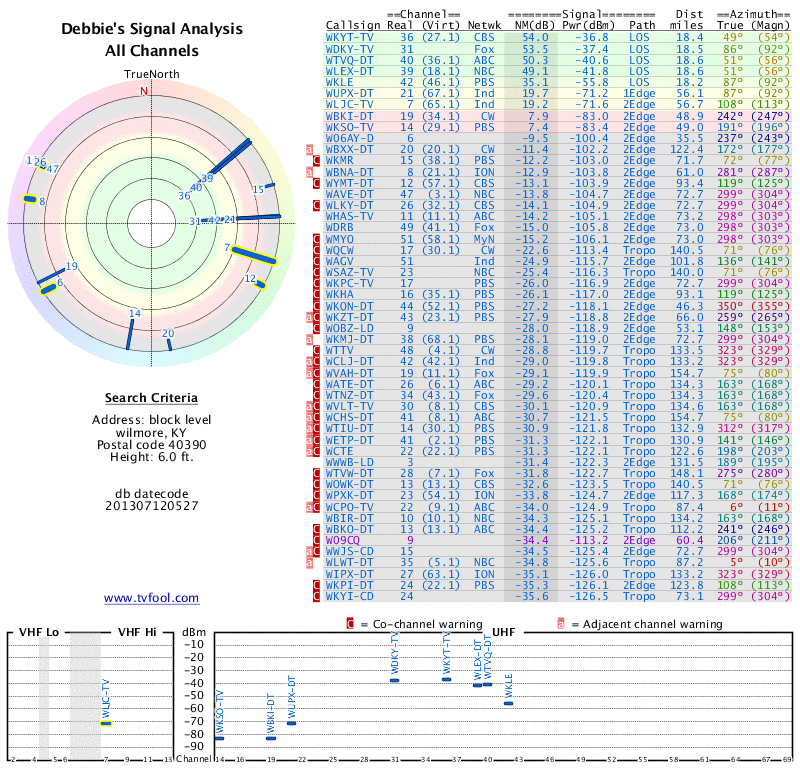 I do have the analysis report for my area. and the channels I was getting were all listed in the green circles. ABC, NBC, CBS, FOX plus some Ky educational channels as well, which aren't as important to me. The other four are.