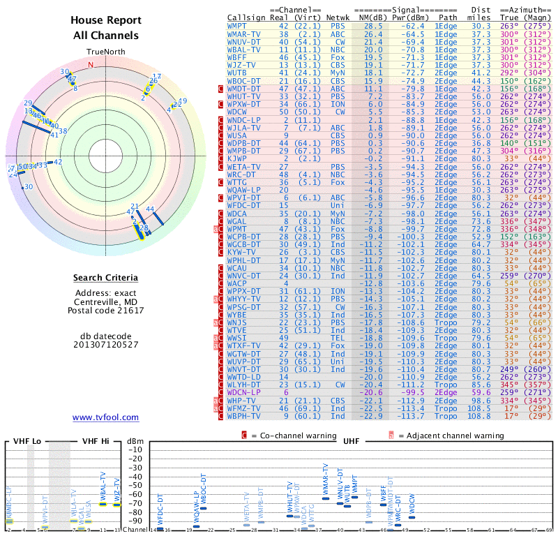 That said, I also have two Toshiba HD televisions which are only getting 6 and 11 channels respectively. On all three sets I am using the built-in Tuner.