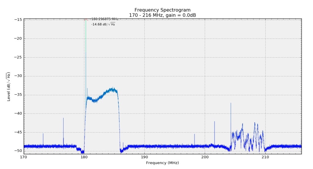 I took the ladder down and right after it stopped raining for a few seconds so I put the single 30-2476 back up on the mast in the lower position. The Spectrum analyzer pattern looks similar to when I had the pair down low like that so maybe it's roof reflections or ground reflections.