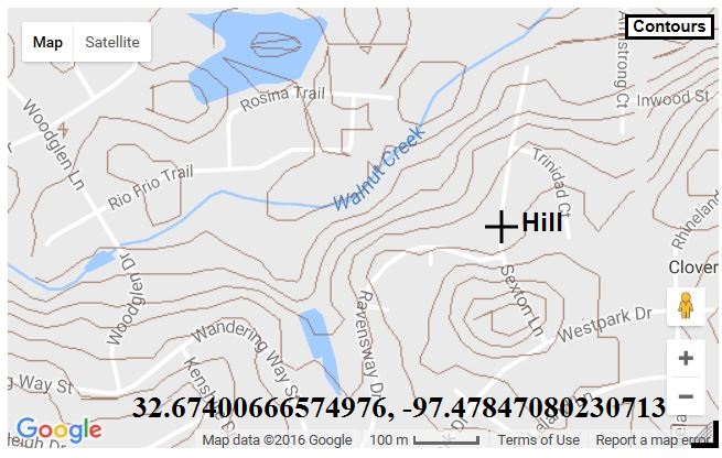 Your original coordinates put you new home in Benbrook TX on Rio Frio Trail. I see the hill and the creek there.