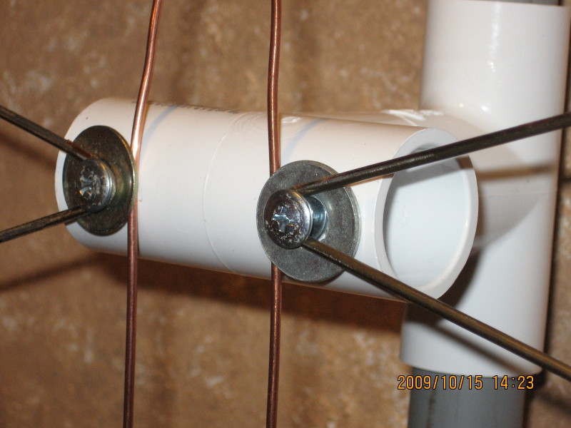 The vertical feed lines are .o41 stainless safety wire and are wrapped around the screws under a washer holding the elements to the wood. There should be no loss between the feed wires and elements.