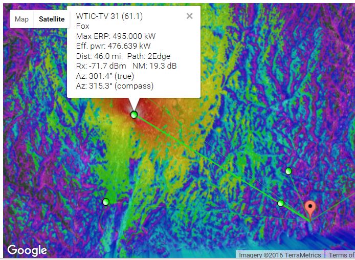 Using the coordinates from your Google map, it looks like the WTIC signal will have to go through your building to get to your antenna, unless you have a north facing window.
