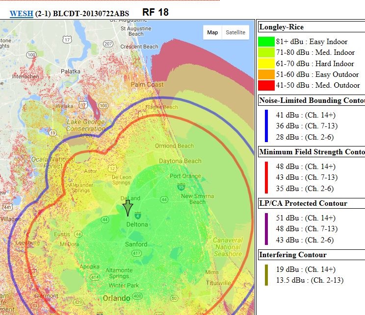Some history: All of the major Orlando stations have their primary transmitters located just outside Bithlo. All of the major Orlando stations, except WESH, went with UHF channels back in the original digital transition in 2009. WESH, on the contrary and unfortunately (for their antenna using viewers), chose to be the odd man out and chose VHF 11. In an effort to mitigate the issue, they eventually added local UHF translators in the Deltona (UHF 18) and Orange City (UHF 24) areas.
