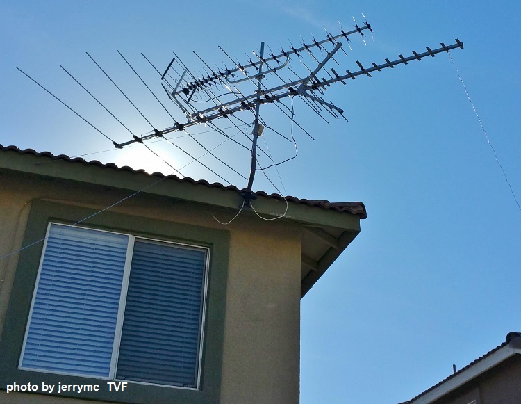 I thought about mounting a very long pole into the ground, but this area of the roof is directly above a concrete patio, and this appears to be the best area to point at Mt. Wilson's TV towers.
