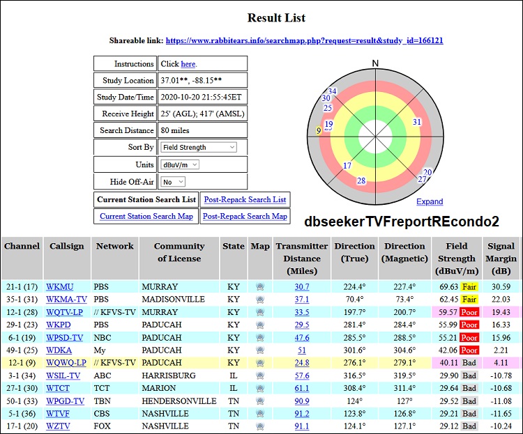 Hello, dbseeker; here is a rabbitears.info report for your Lake Barkley location: