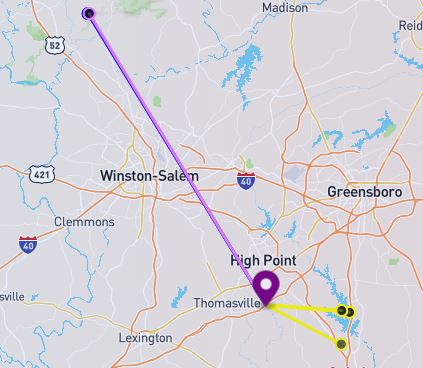 Their broadcast tower is on top of Sauratown MT, the MT is 2,200 feet and the tower is another 500 to 1,000 feet at most. They transmit at 1,000Kw. That puts the transmitter at around 3,000 feet.