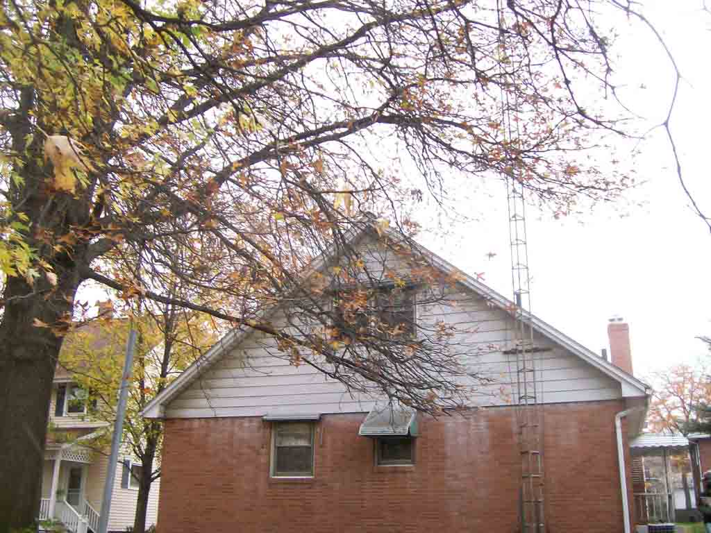 One question is I only use the phillips MANT940 and I get signals from both cleveland and youngstown, and I only have one antenna pointed about 330 degrees. Are two antennas really necessary? I suppose for the optimal config. But it seems like combining antennas is not a good idea, coupled with the fact that the one guys setup will cost me about $200. I'm not sure if I wanted to do that. Like I said, I get probably 40 channels right now, FOX cleveland-youngstown.NBC cleveland-youngstown. FOX cleveland comes in 70% of time. CBS cleveland-youngstown. CBS cleveland comes in 30% of the time. ABC cleveland-youngstown. ABC youngstown spotty sometimes. ION, PBS (cleveland and young) WVIZ. WUAB cleveland and youngstown. And a few more not mentioned. I dont know if I can get to the mast right now or not, its awfully high, I probably could get to the underside of it and try and take it down. Someone suggested that putting a weighty antenna at the top would cause the mast to bend (I personally think it would be fine). The mast is 1" dia. or so, 3-4' high. Attached are some pics. The back of the house faces south. I would like the option of something side mounted to be a possibility, just it case I cant install it at the top. When I add a splitter to the mix of my phillips, I lose channels, so ideally I would like to add a four way spilitter to the new antenna setup. Would this be an option without losing channels?
