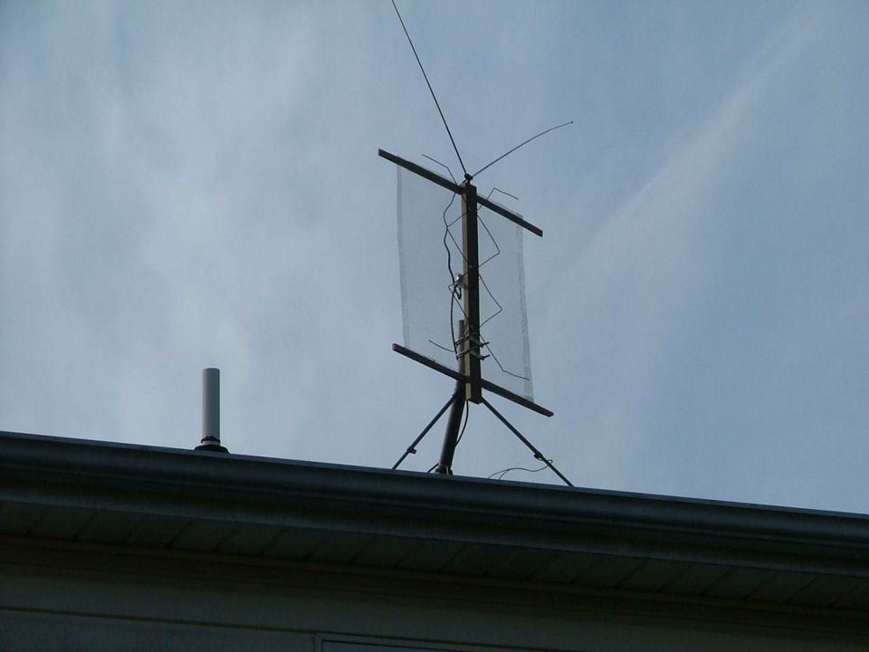 I attached a picture of the antenna that I made, taken from the ground level. Again, this is TEMPORARY.