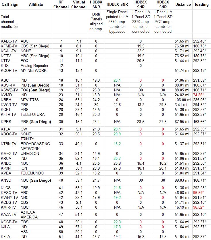 Using the rotor, I “bump” aligned the CM-4228 for maximum SNR on LA channel 36 (4.1 KNBC) and then, by eyeball, “fix” aligned the HDB8X to match. I purposely did not try to introduce the variance of two separate amplifiers although looking at my TV Fool report amplification is certainly called for: http://www.tvfool.com/?option=com_wr...1dda169109ca5c