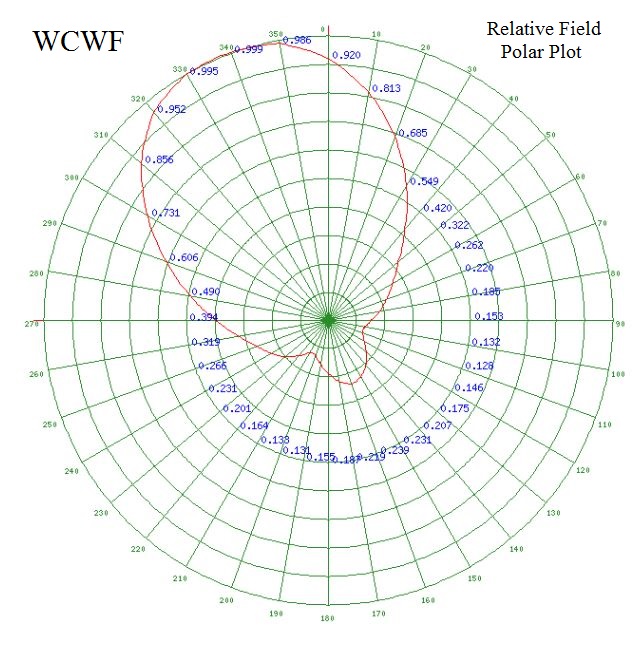 Another difference I see is that because of transmitting antenna patterns WCWF only sends about 15 kW of its 800 kW Maximum ERP in your direction, but WACY sends 35 kW of its 50 kW Maximum ERP. See attachments 3 and 4 for relative field polar plots.