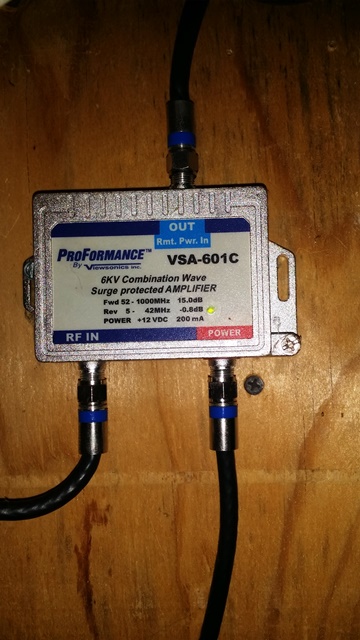 Now his amp. Does anyone know if this will work for his antenna system, should he want to hook up the splitters again and send signal to each room? Or is it an satellite only amp? I saw no amp up on top of the roof. :