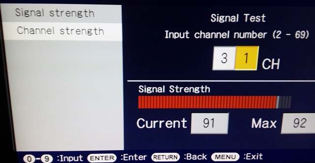 Anyhow, here's a photo of his Sony signal meter, his strongest channels. The channels displayed are the REAL Channels: