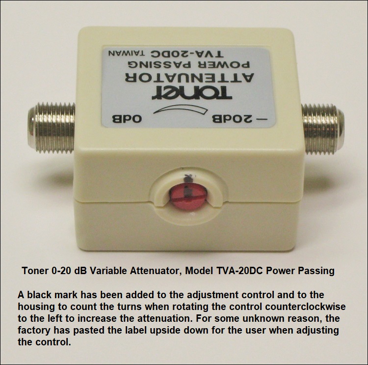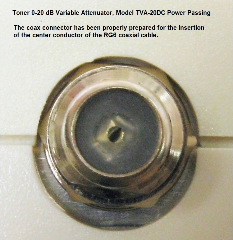 I ordered two of the Toner attenuators in case one was defective. One of them had a coax connector with insulation that hadn't been completely removed, making it difficult to insert the center conductor of the RG6 coax.