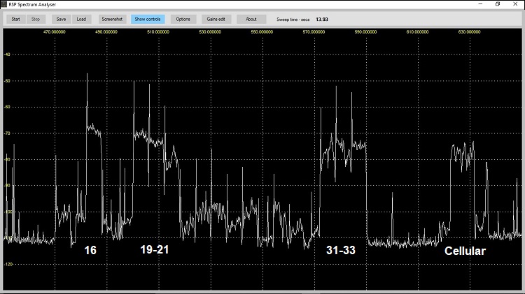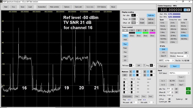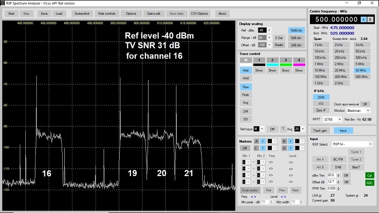 I did some additional tests with the SDRplay RSP1A and the RSP Spectrum Analyser (British spelling) software.