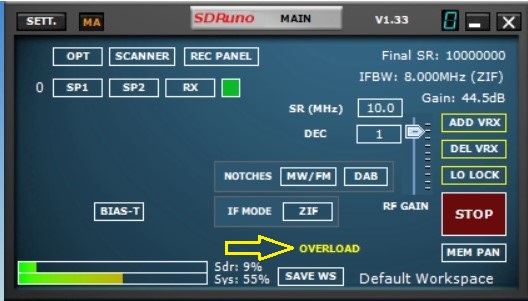 A common error is a complaint that signals with a 40-50 dB SNR as displayed on SDRuno, shows a signal barely breaking through the noise floor on the analyser. In almost all cases, AGC is enabled on SDRuno, and the LNA gain reduction slider set at a low gain reduction value resulting in a lower noise floor. IF gain reduction will be whatever the AGC system sets it at.