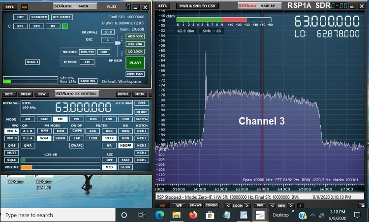 | When comparing the SDRplay and the Airspy, noticed the noise spectrum on the lower frequency side of Channel 3 is different for each.