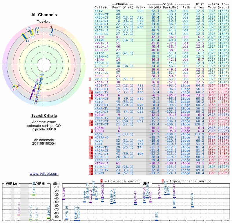 I have a ranch style home with a standard plywood sheet roof and clay tiles. I have easy access to the attic and there is plenty of room to set up an antenna. There are 3 tall pine trees in my front yard and a large aspen tree across the street that block my direct line of sight to the Cheyenne Mountain towers. I attached my coverage map to the post to give an idea of what my view is. I was thinking about installing a winegard hd7698p antenna in the attic and then running the coax into the basement where I have a splitter already installed from cable. The signal would feed 3 HDTVs throughout the house.