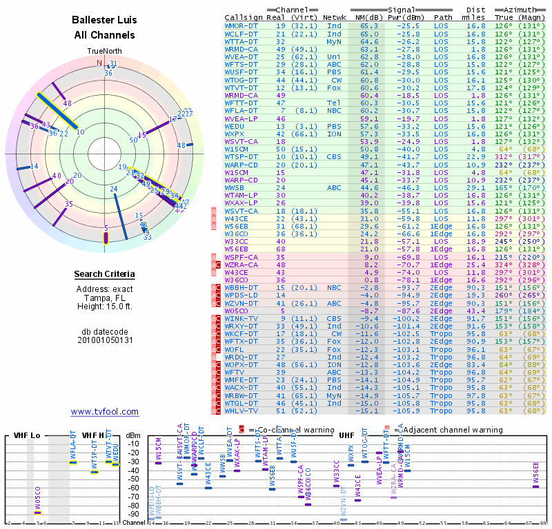 My big brother lives in Tampa and its map of tvfool show many signals coming from different places.