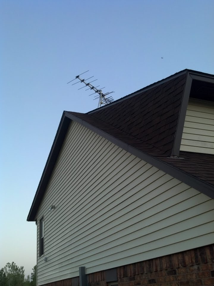 As of now I have the coax temporarily running near the peak of the roof to the west side of house and connected to the cable coming into the house. I'm hitting 30 channels and very happy, but I need to finish this install.