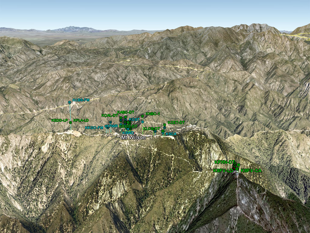 The discussion on their site regarding the loss of coverage in the east is an interesting one. It looks like this problem is a combination of two factors: 1) they are too low on the tower, and 2) the tower they use is set back into the mountains about half a mile further back than most of the other TV transmitters on Mount Wilson.