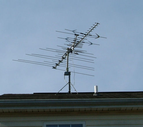 I did notice that my satellite mount has two support brackets when I looked at it again, but I'm still not sure it would work because it's only 2-3 feet high and my roof has a very steep pitch, so getting a 14ft antenna on there would be tricky.