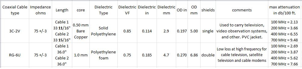When I assembled the antenna, I noticed that the coax was unusually thin and very flexible with rubber boots and molded connectors installed @ each end.