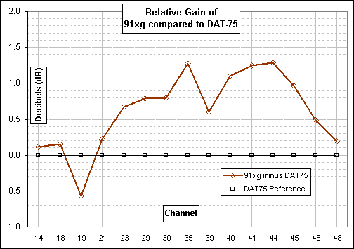 The 91XG had about 1 dB more gain for the mid portion of the UHF band.