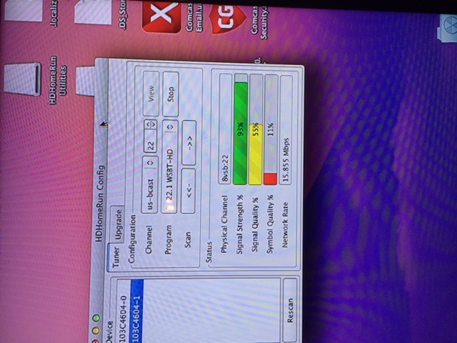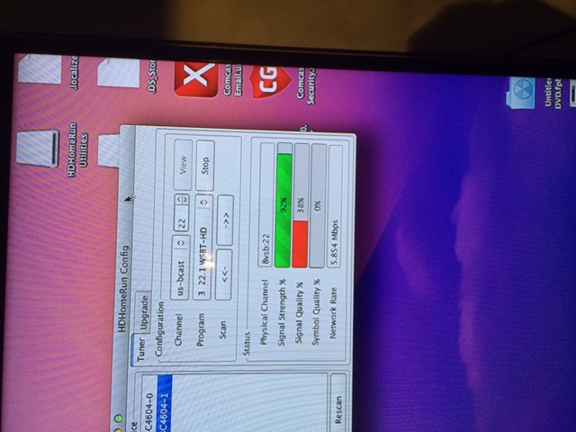 For 3 of the 4 major networks, signal strength is consistently above 80% and signal quality is also generally high - not perfect but usually in the upper 70s, mostly in the 80s. For one network in particular (57.1, WBND, the ABC affiliate), the signal strength is rather weak (generally in the low 70s which is yellow and sometimes goes white) and signal and symbol quality (not sure what that is even) fluctuate pretty drastically. I've attached 5 photos of the signal quality for the one channel - they were taken in quick succession.
