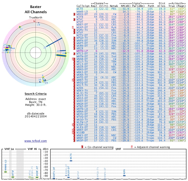 For reception of , WBXX-DT , Real UHF Channel 20 , (virt) virtual number (20.1) , The CW.