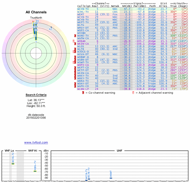 1. Please post the actual link to the TV Fool Report. It is clickable provides information in addition to what is in your graphic.