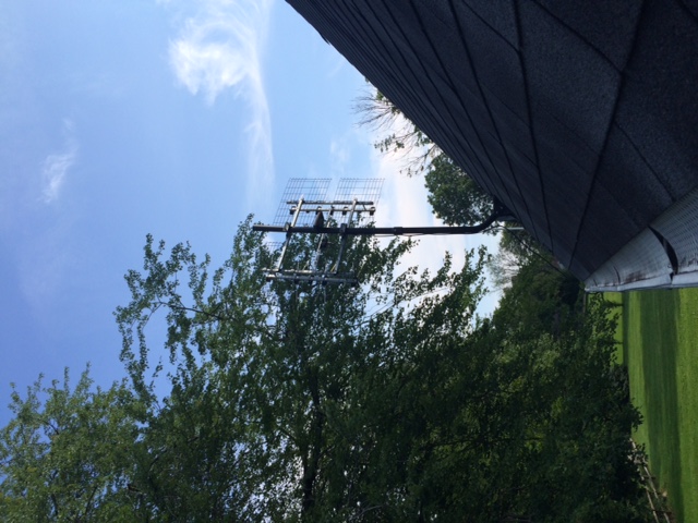 Mounted on my Roof in place of the DirecTV dish. About 15-25' from ground. I have it facing about 344 degrees north (based off the compass on my phone)
