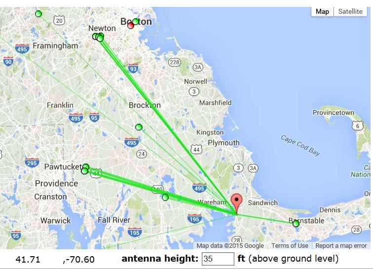 The horizontal beamwidth of the 4228HD at 30 degrees for 590 MHz is much narrower than the beamwidth of the Sensar, so antenna aim is more critical. If you are trying to aim between the two you should probably favor Boston.