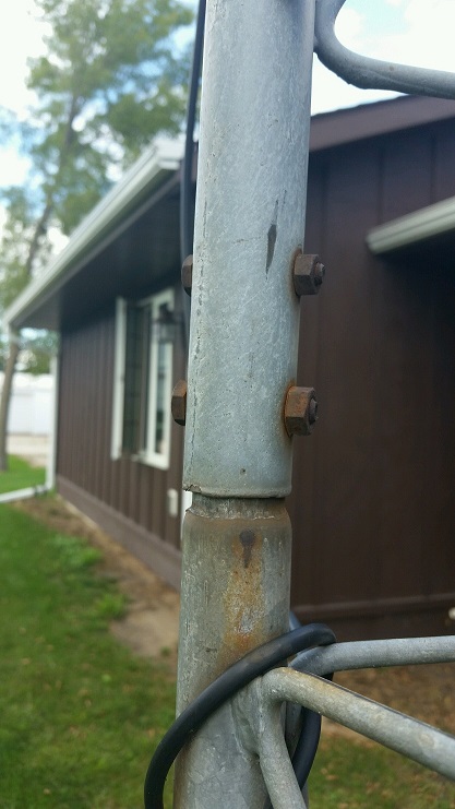How would you go about fixing it? I thought about drilling the holes out and putting bigger bolts in, but was worried this might make the pipe weaker with the bigger holes. I thought about putting a "sleeve" pipe over it and bolting it on. I've got a portable welder and all sorts of tools, but I hate to weld on the Galv. pipe.