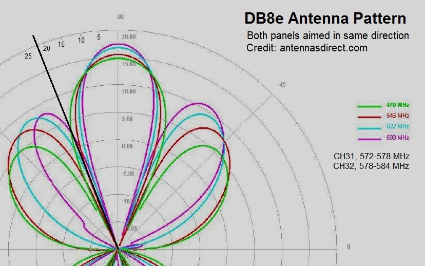 I first started my testing with a 91x antenna, which only got a picture on the two strong stations. The DB-8e seems to work much better in my situation.