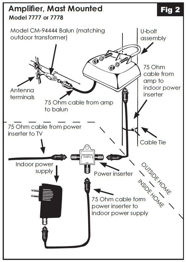 cable>>inserter>>>>Preamp>>antenna