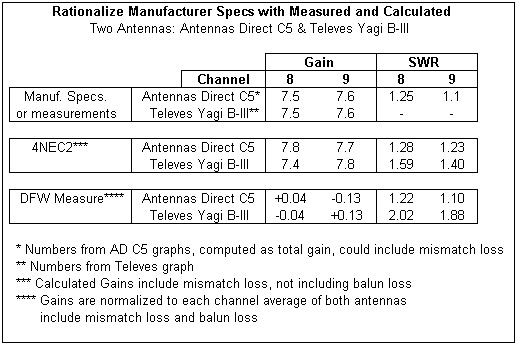 A 4NEC2 analysis of the HDTVi tends to support the assumptions of flat gain and favorable SWR.