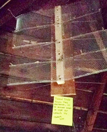 I put on the screen reflector and put it in the rafters and this time I pointed it 320 degrees and about 5 degrees up since I'm only 2.5 miles from the towers.